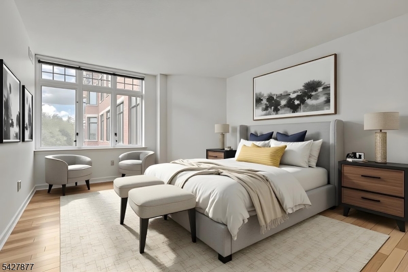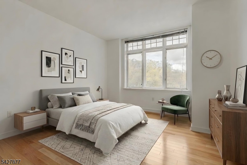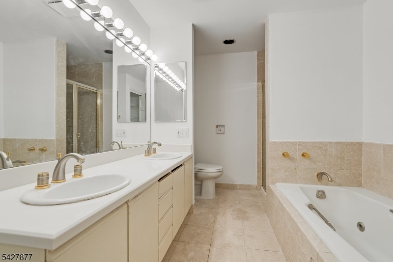 This sought after 2-bedroom 2-bathroom west facing 1410sf "E line features incredible light through its open living-dining floor plan, and unique curved architecture presents an expansive wall of windows overlooking South Mountain Reservation. The breakfast room off the galley kitchen opens up numerous possibilities for convenient living. The two bedrooms are separate from the living area, offering a layout for those looking to tuck away for privacy while others are continuing to entertain. The spacious primary suite features two generous walk-in closets, perfect for those right-sizing from a large home! Showcasing beautiful honey-colored wood floors throughout, and walls freshly painted a neutral palette. Additional coat & utility closet, side-by-side full size washer & dryer make this convenient layout complete. The Top provides 24-hour concierge & doorman, valet parking, guest parking, deeded storage, party room, library, indoor pool, spa tub, fitness center, steam showers and sun deck. Centrally located close to major highways, Maplewood's thriving Village, the South Orange Performing Arts Center, a 2,000 acre park, and the MidTown Direct train station with easy access into NYC. Parking $75 per car per month, Special Assessment $505.89 until 7/32
