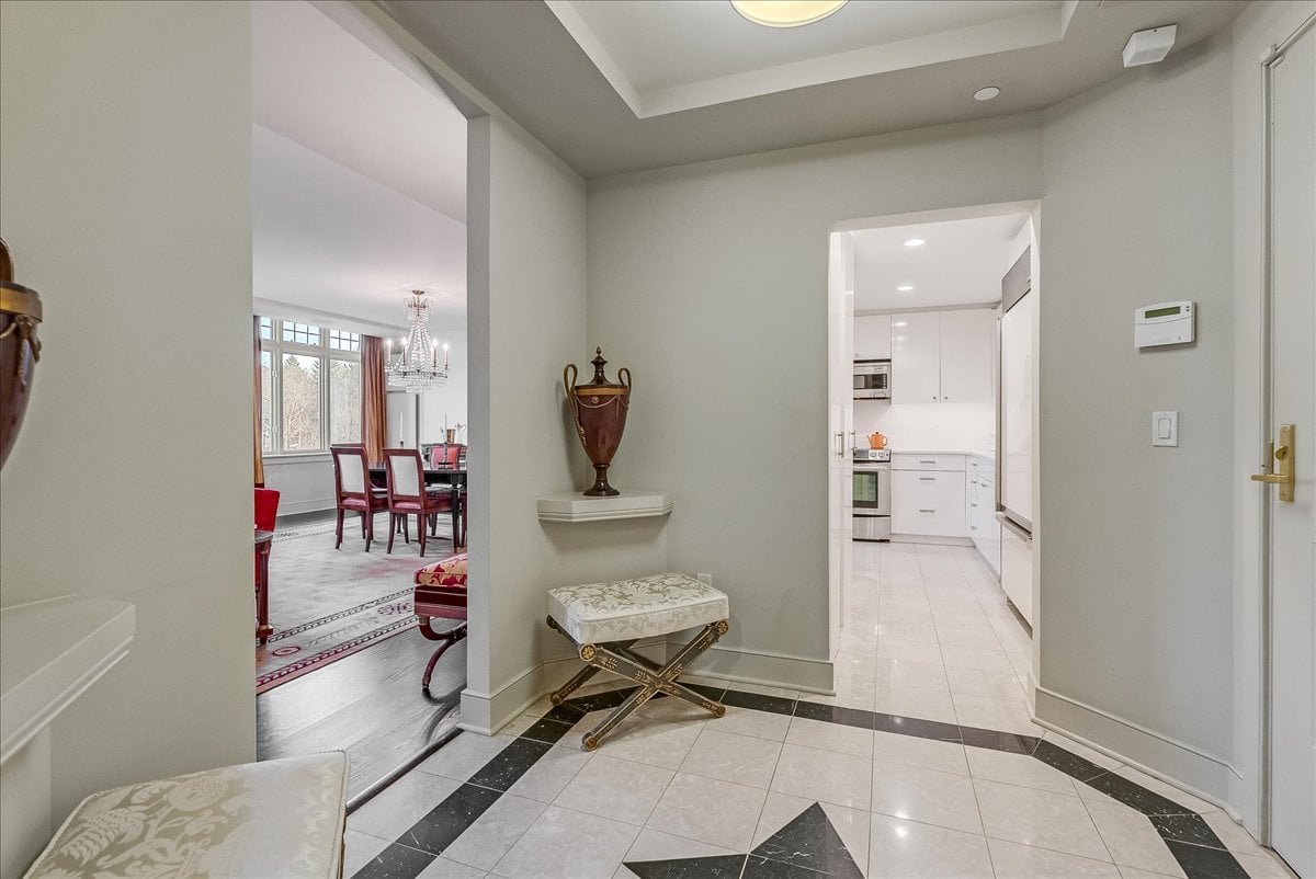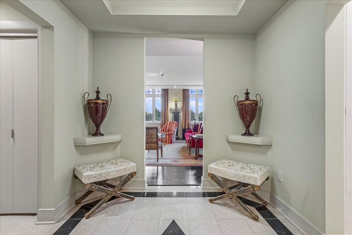 Indulge in an extraordinary quality of life within this remarkable 1,835-square-foot residence, which commands breathtaking vistas of South Mountain Reservation.A grand marble foyer ushers one into an expansive living & dining area, distinguished by three tiers of triple windows that bathe the space in light.The ambiance is further elevated by sophisticated recessed and cove lighting, elegantly raised doorways, crystal glass doorknobs, & rich ebony hardwood flooring throughout.The gourmet kitchen features sleek, high-gloss taupe WoodMode cabinetry, complemented by a suite of premium appliances, incl: Sub-Zero refrigerator, electric range, microwave, dishwasher, & full-size laundry facilities.The secluded primary suite serves as a luxurious retreat, offering a sumptuous marble bath complete w/ Kohler jetted tub, steam shower, dedicated make-up vanity, & private commode.Ample storage is provided by two large walk-in closets & a linen closet, completing this serene chamber.A distinct wing of the residence presents a secondary bedroom featuring an en-suite marble bath w/ a stall shower & two generous closets.Abundant windows crowned w/ transom tops capture brilliant light & stunning sunset views.The Top offers an unparalleled lifestyle. Residents benefit from comprehensive 24-hour services, incl: doorman, concierge, & valet parking, alongside world-class amenities: heated indoor pool, spa tub, fitness center, library, & party room.Additional deeded storage located on garage level